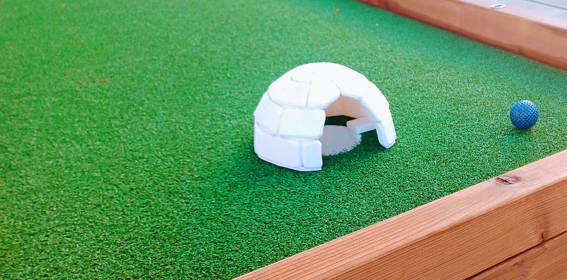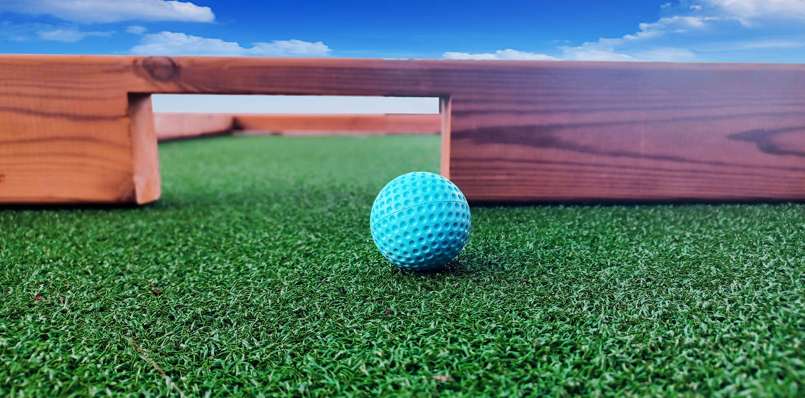 Forestil dig en 18-hullers minigolfbane, der kun fylder ca. 1x5 meter. Ved hjælp af udskiftelige forhindringer kan du opsætte et utal af baner, og det er kun fantasien, der sætter grænserne.